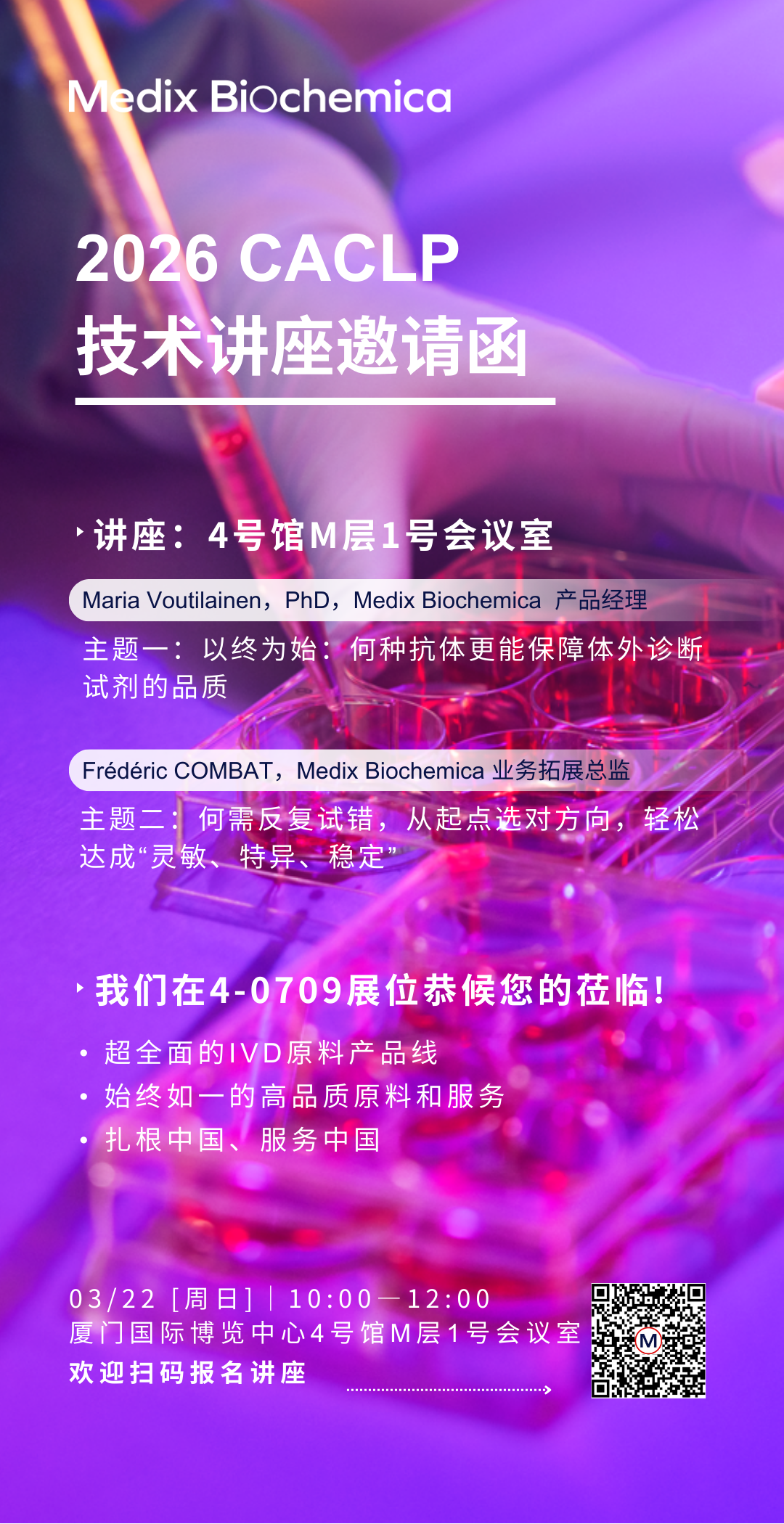 为了让您有更好的体验,Medix Biochemica将根据报名提前准备讲义并预留座位,请务必通过如下方式登记信息并报名。座位有限,先到先得!